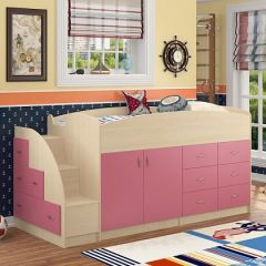 Кровать-чердак "Дюймовочка-4"  Дуб молочный/Розовый | мини фото 1