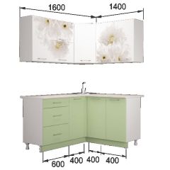 Кухонный гарнитур угловой Флоренс Грин (1400*1600) УНИ
