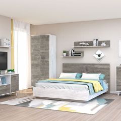 Модульная спальня Эго (бетон светлый/камень темный) на ножках