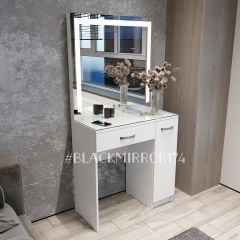 Гримёрный стол с зеркалом в раме с 1 ящиком, дверцей и LED рамой.